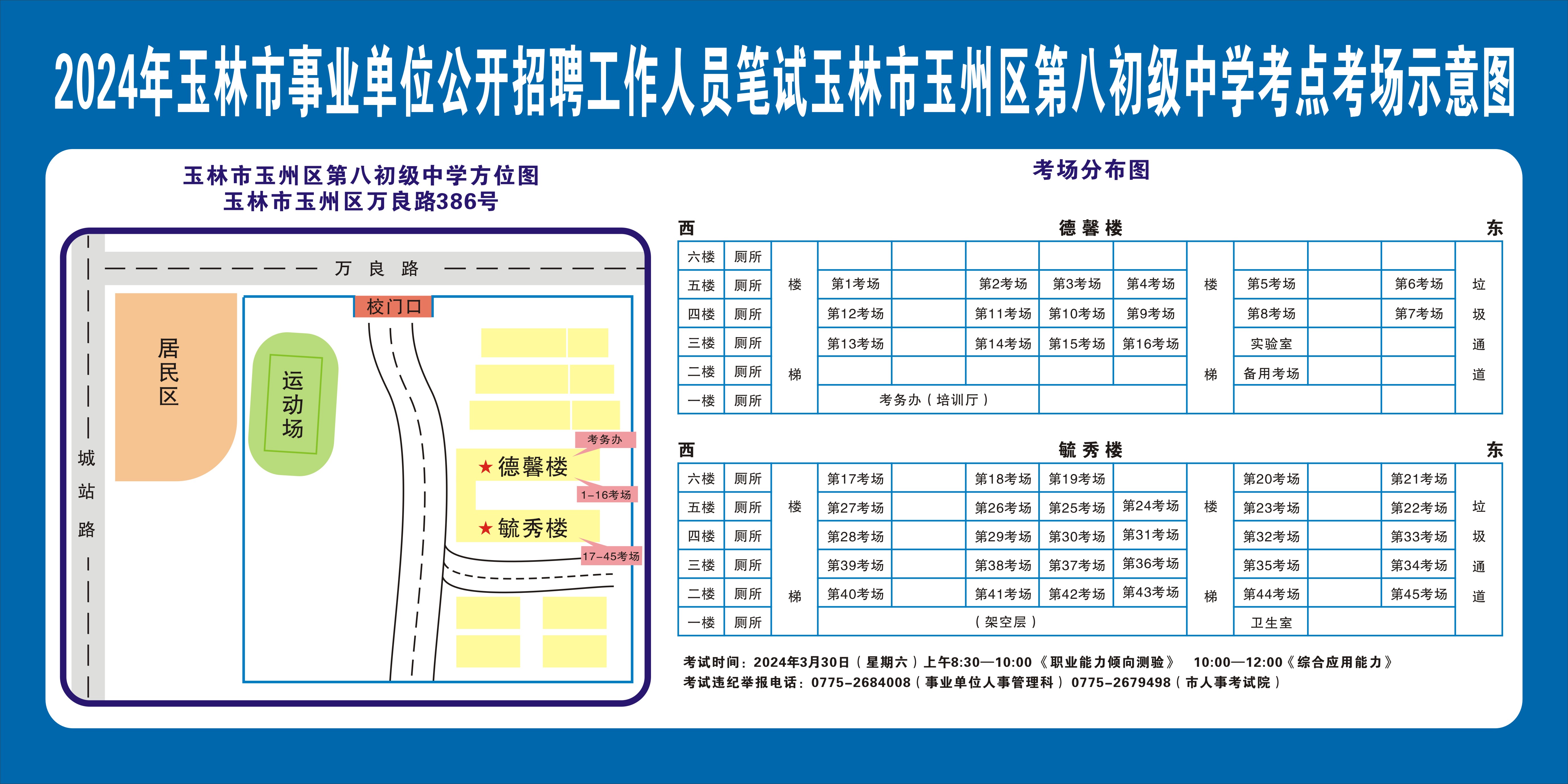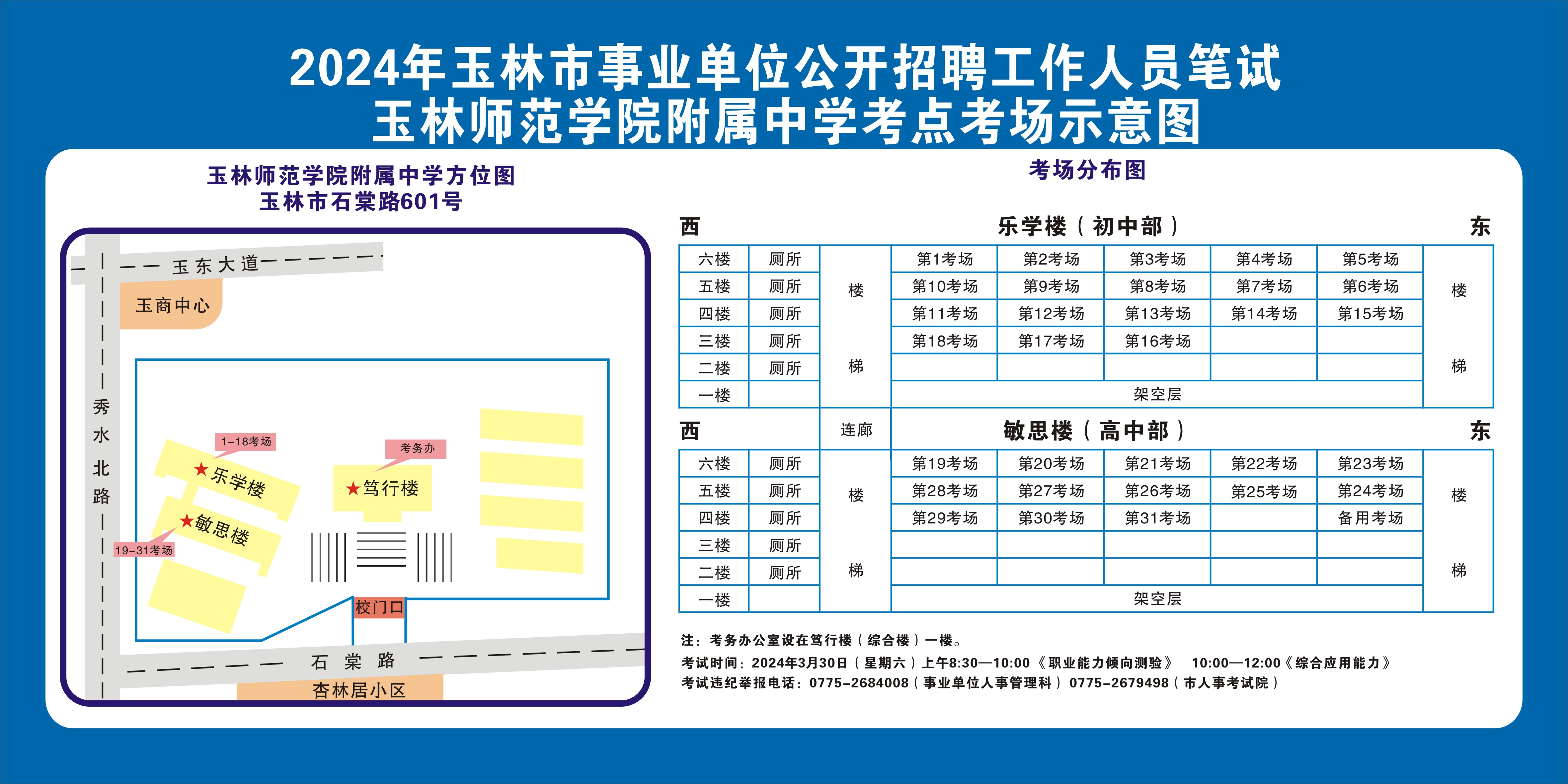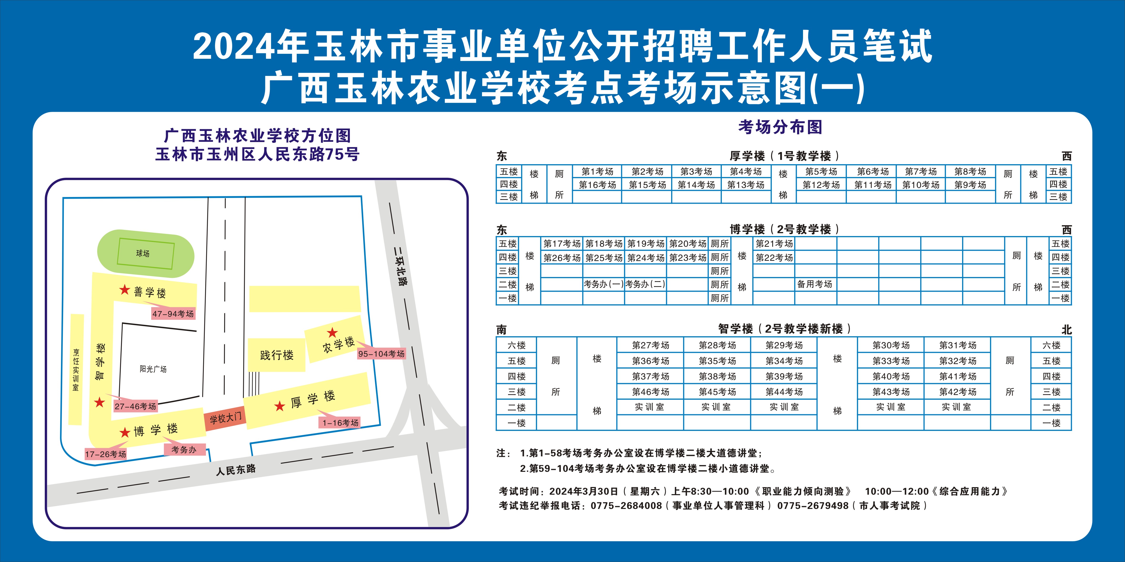 需要特別注意的是:玉林市第一職業(yè)中等專業(yè)學(xué)校考點(diǎn)是設(shè)在該校的東校區(qū)(人民東路東235號(hào));玉林市第一中學(xué)考點(diǎn)是設(shè)在該校的運(yùn)嶺路校區(qū)(二環(huán)北路1228號(hào))!