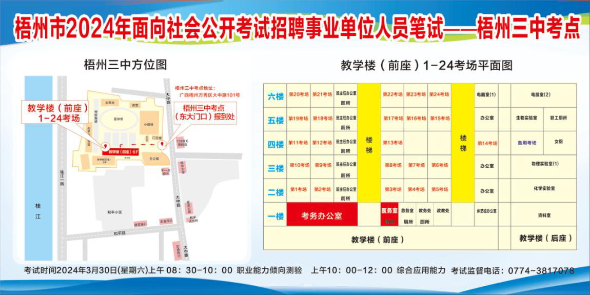廣西2024年度事業(yè)單位公開招聘工作人員公共科目筆試梧州考點指引