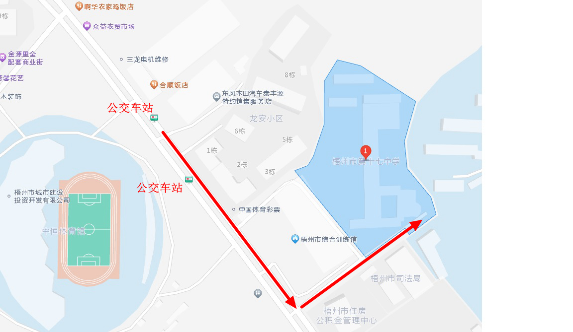 公交車參考:10路、32路、49路、49路延長線、蒼梧城鄉(xiāng)6路。進入梧州學院校區(qū)統(tǒng)一在東大門進入,考點門口處于交通干道,送考車輛只能在東門外短暫停留,南門及其他門不得進入無法核驗考生身份。