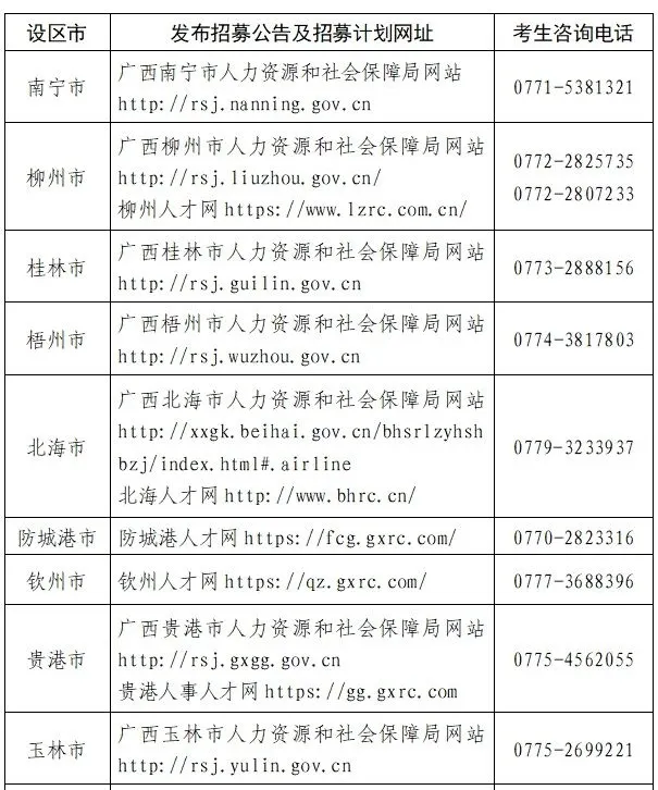 具體事宜可進(jìn)入廣西“三支一扶”網(wǎng)(http://szyf.gxrc.com)查詢政策或向各市“三支一扶”辦公室電話咨詢。