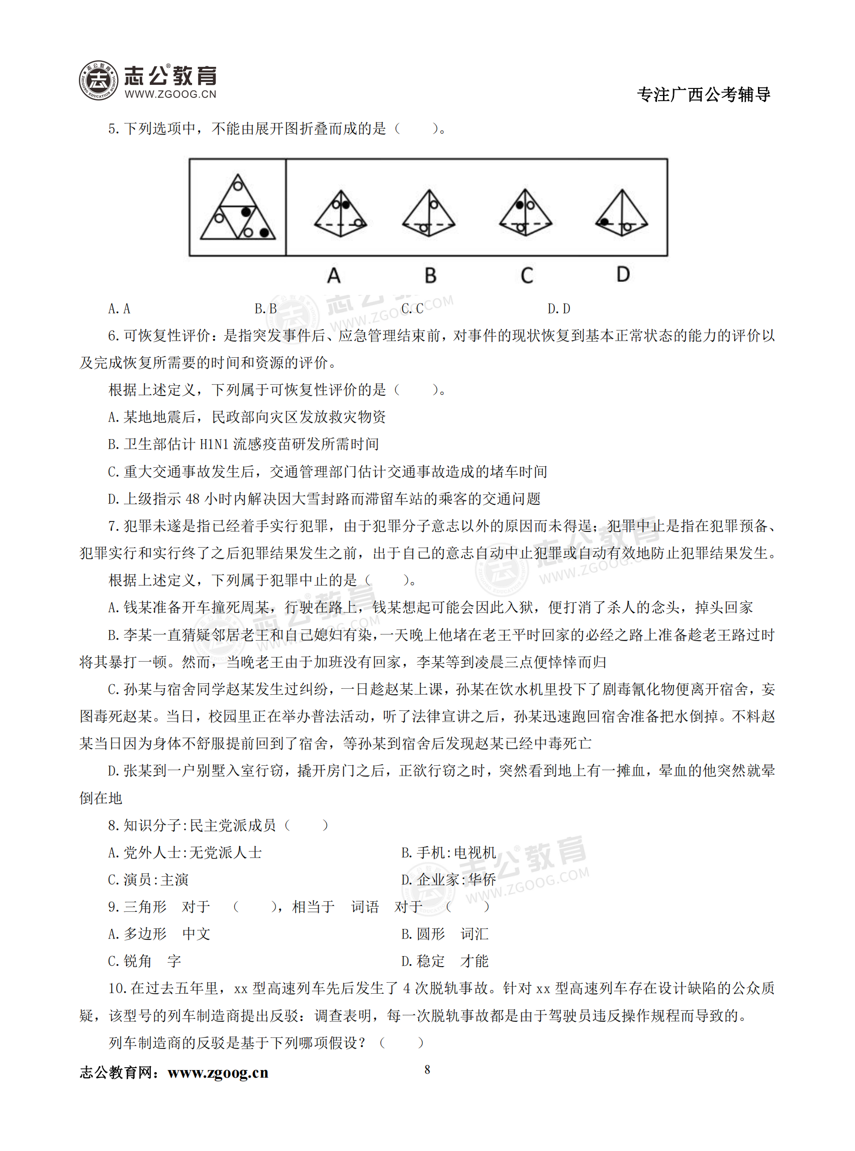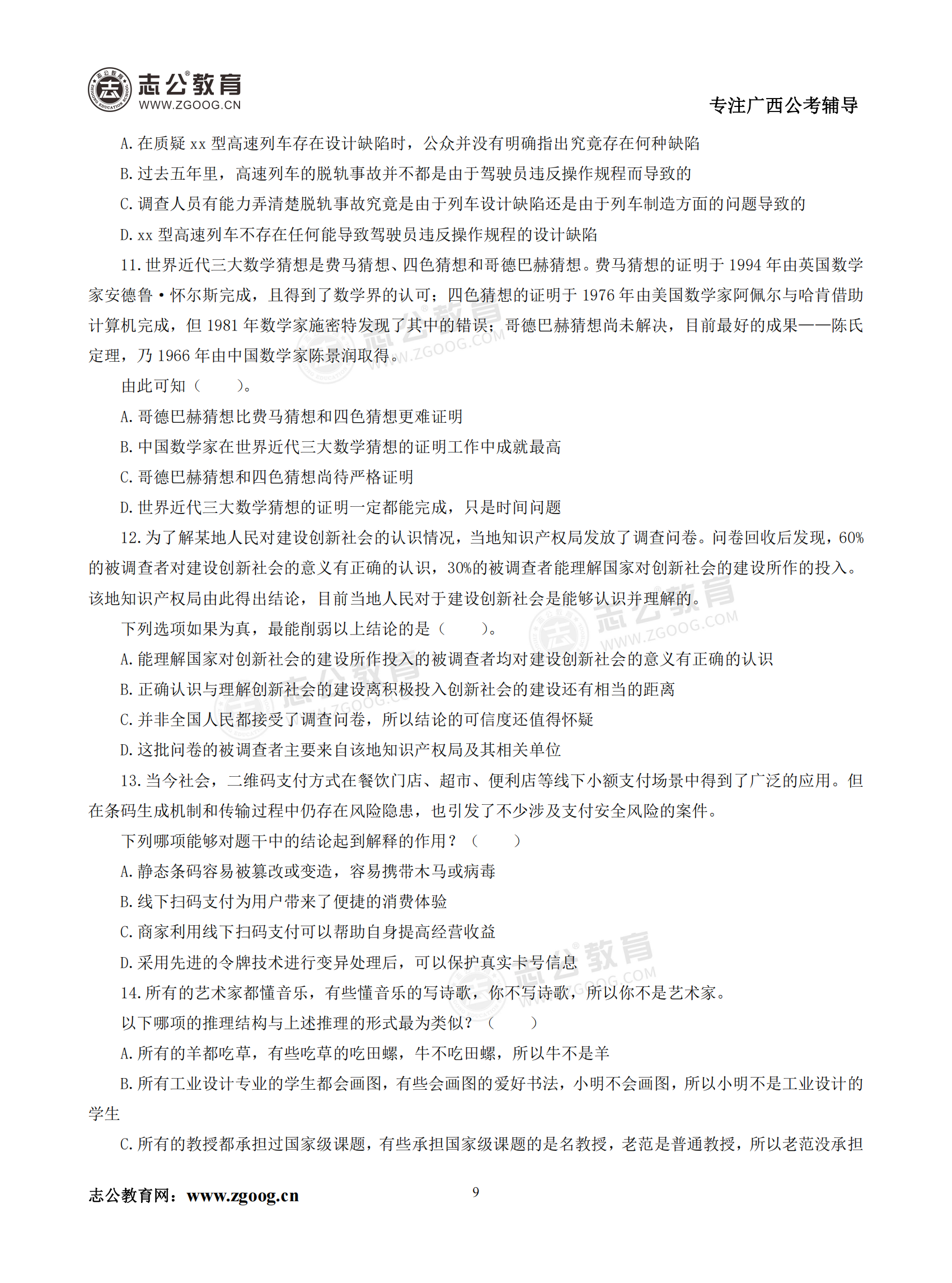 【公考模塊練習】判斷推理題二(試題)