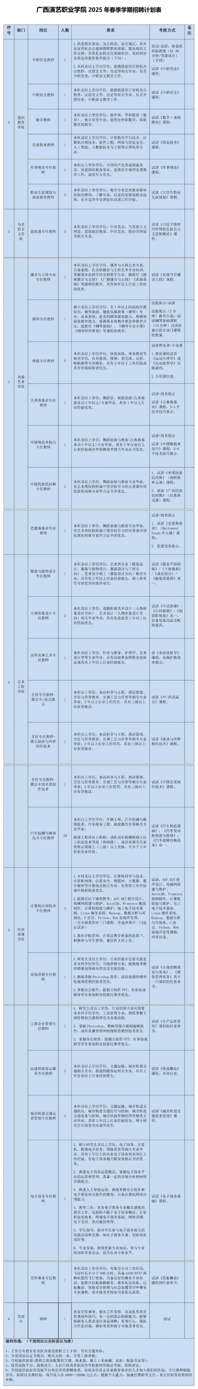 見廣西演藝職業(yè)學院2025年春季學期招聘計劃表(也可上廣西人才網(wǎng)了解具體信息)。