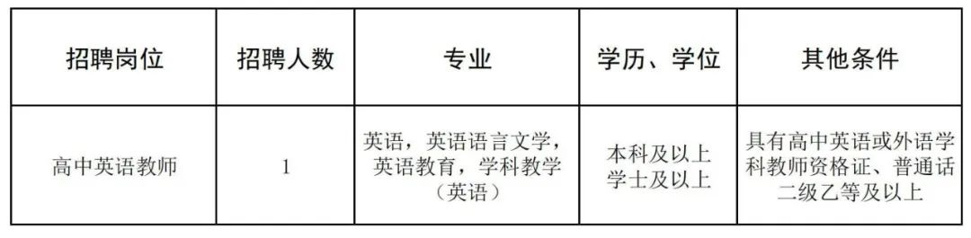 根據(jù)發(fā)展需要,學校擬招聘高中英語頂崗教師共1人,具體招聘信息如下: