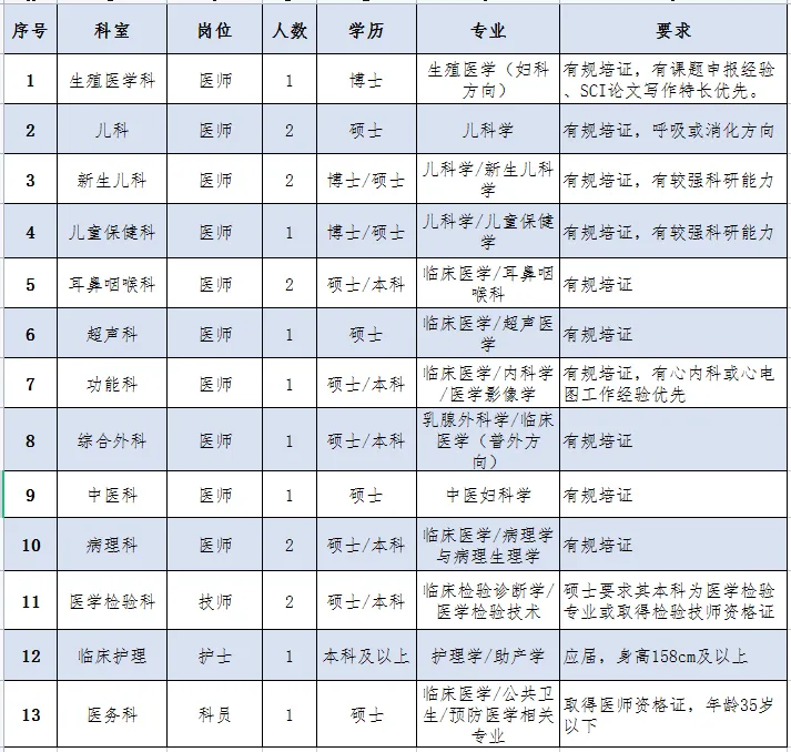 根據(jù)醫(yī)院整體發(fā)展規(guī)劃和學(xué)科建設(shè)需要,柳州市婦幼保健院面向社會(huì)公開(kāi)招聘各學(xué)科相關(guān)專業(yè)技術(shù)人才,具體如下:
