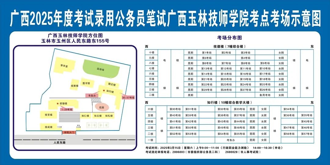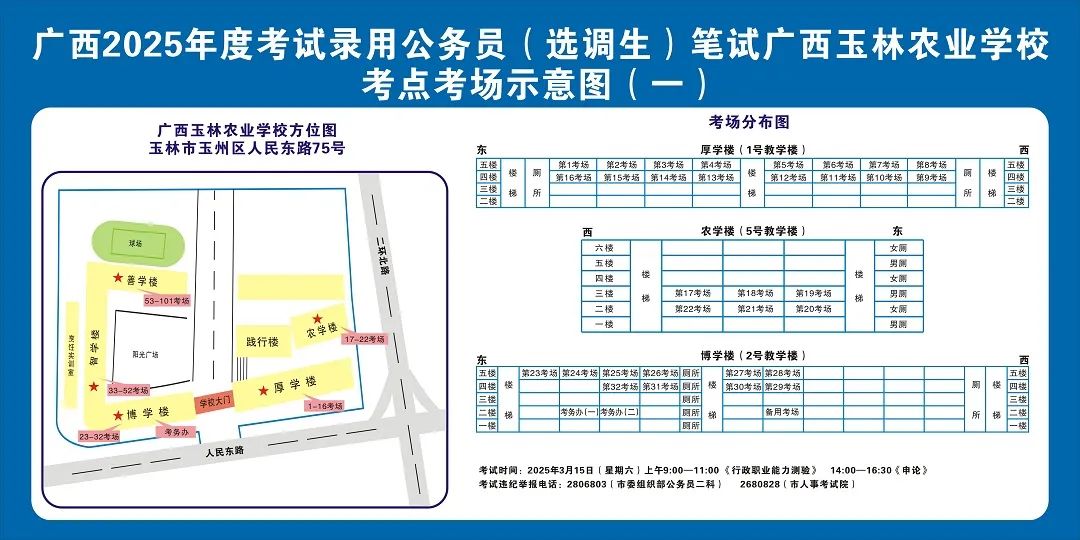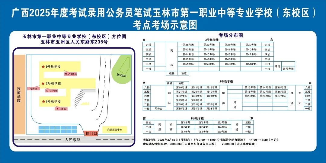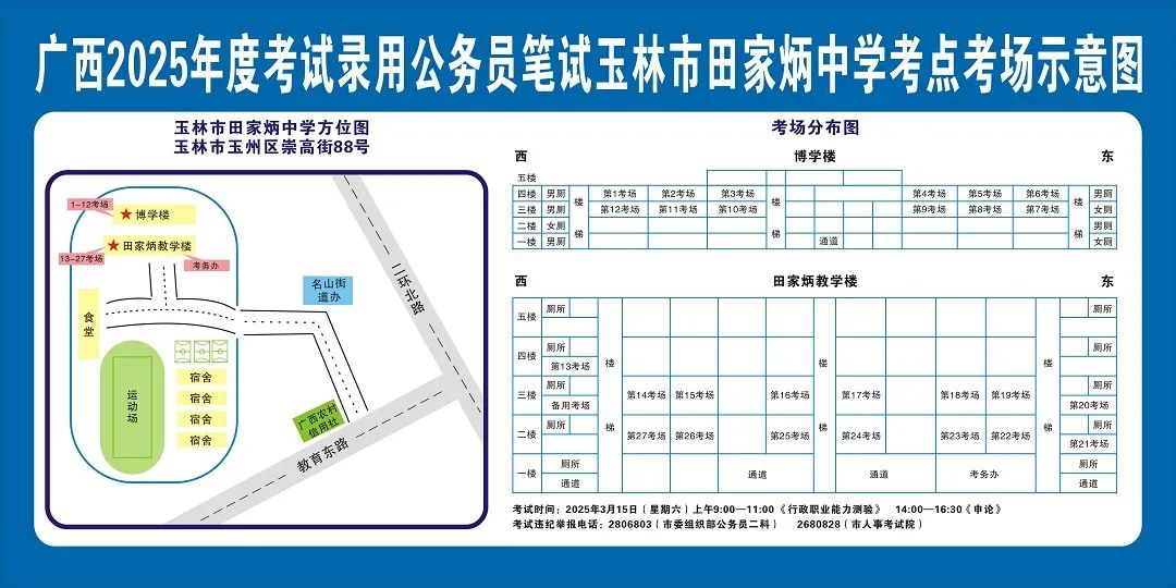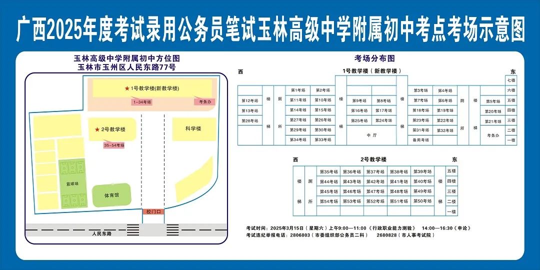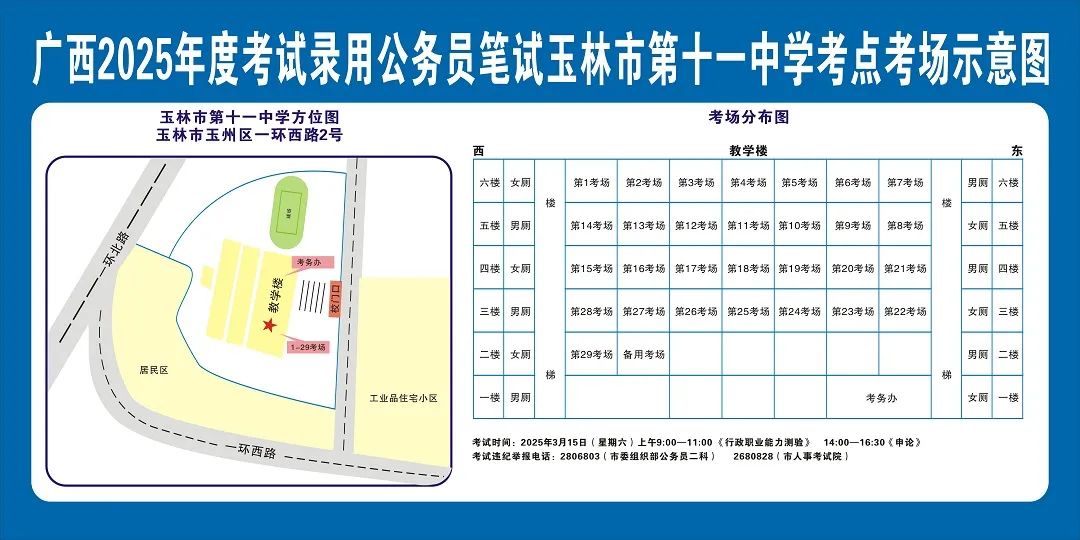 除考試當(dāng)天考生可以進(jìn)入考點(diǎn)外,考生不得提前進(jìn)入考點(diǎn)查看考場(chǎng)(學(xué)校將在大門(mén)處擺放考場(chǎng)分布示意圖),玉林考區(qū)11個(gè)考點(diǎn)的考場(chǎng)布置情況如下: