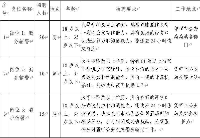為適應憑祥市公安機關(guān)管理工作發(fā)展需要,憑祥市公安局決定面向社會公開招聘40名警務輔助人員(以下簡稱輔警)。具體事宜如下:
