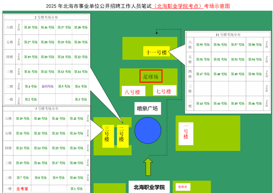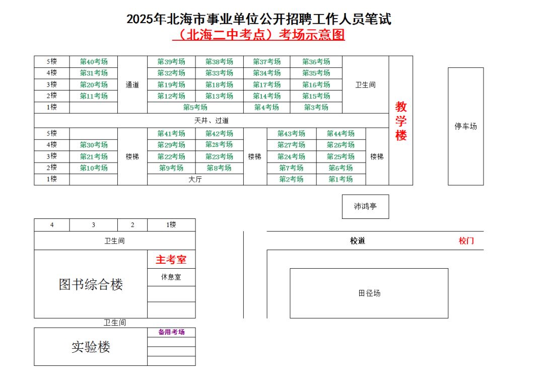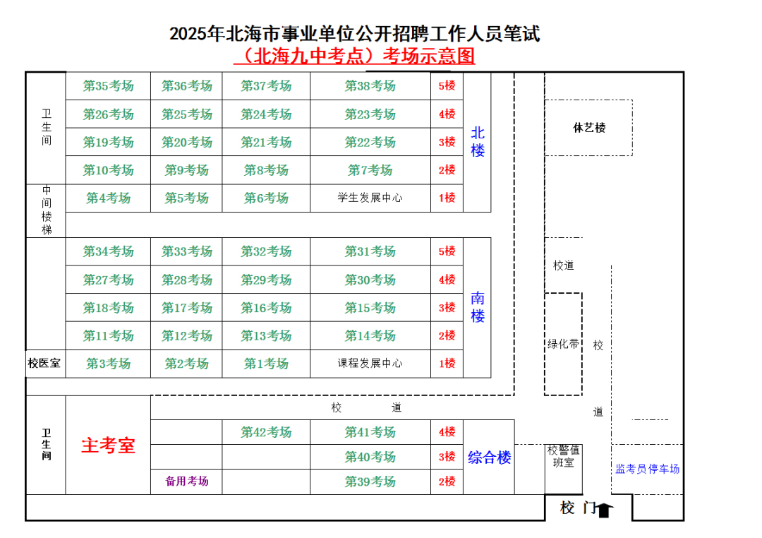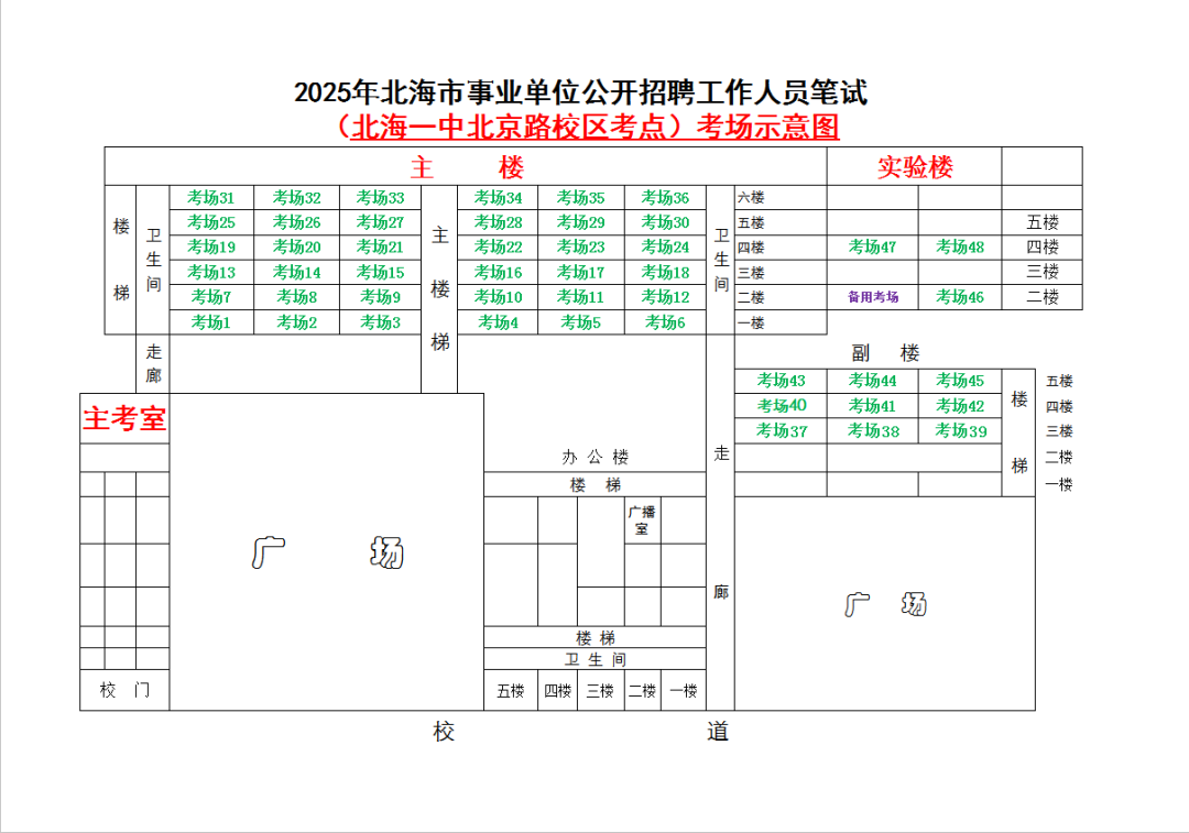 本次筆試北海市共設(shè)十個考點,考點考場布置分別為: