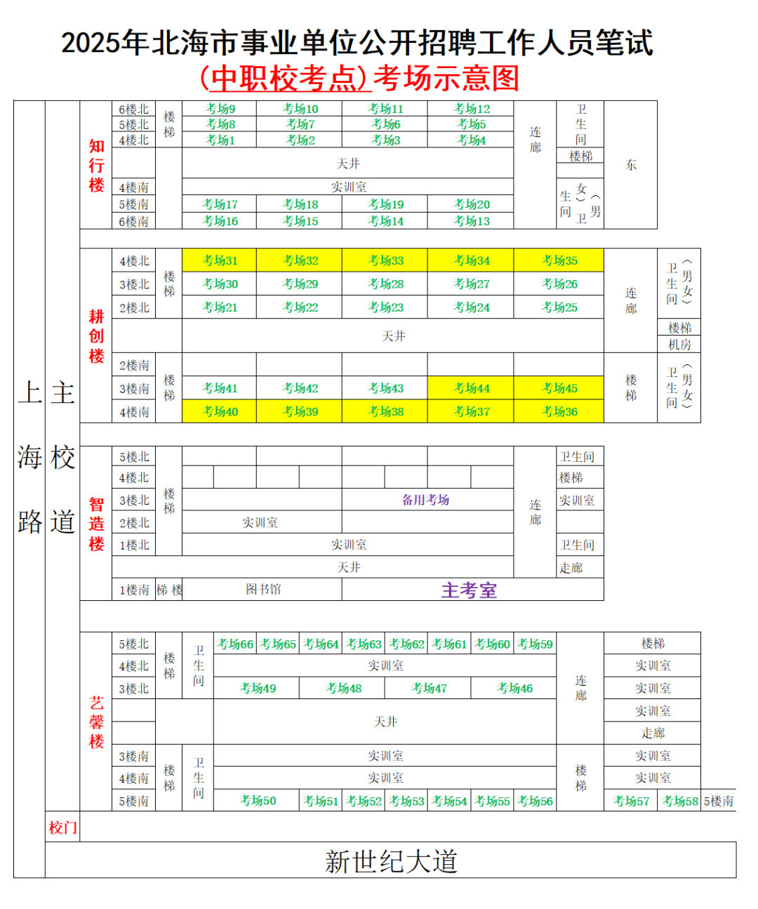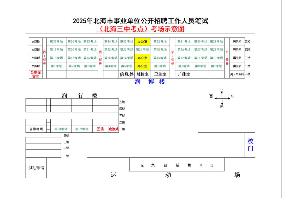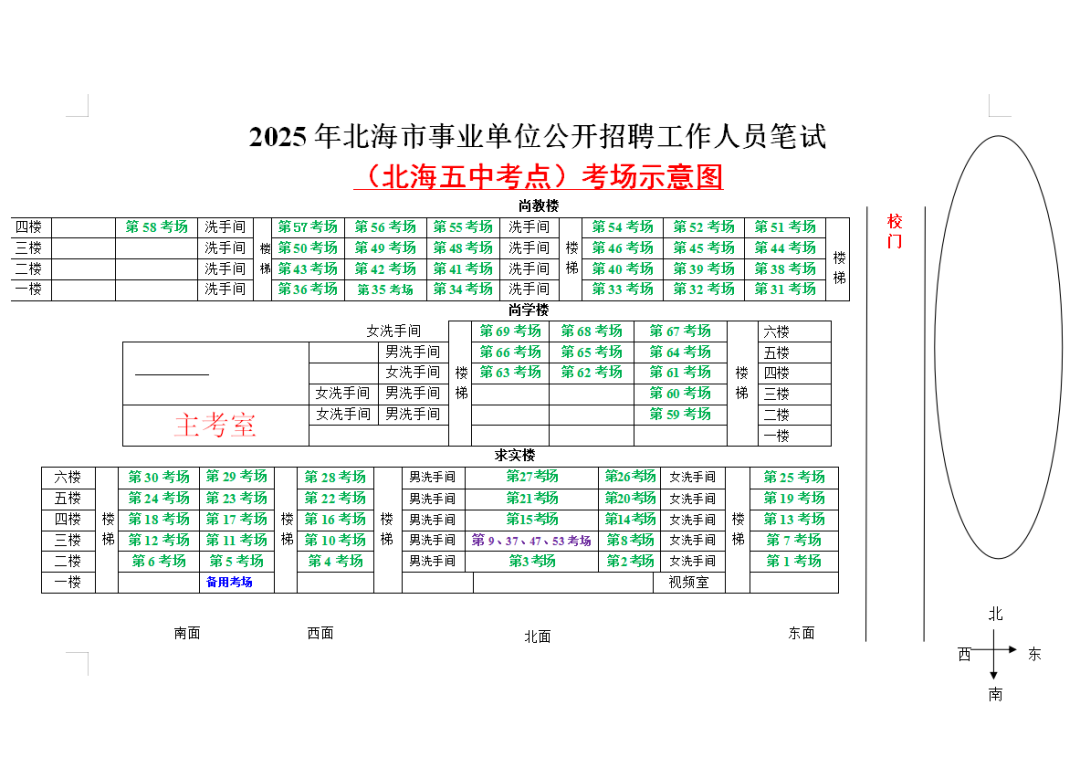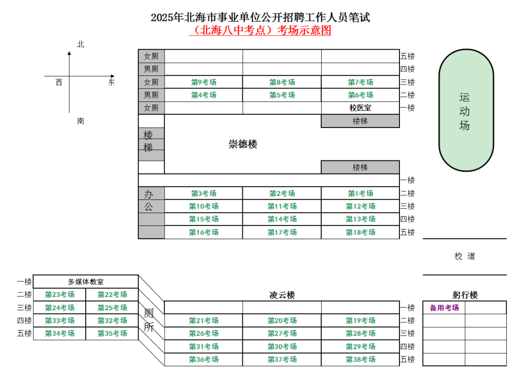 本次筆試北海市共設(shè)十個考點,考點考場布置分別為: