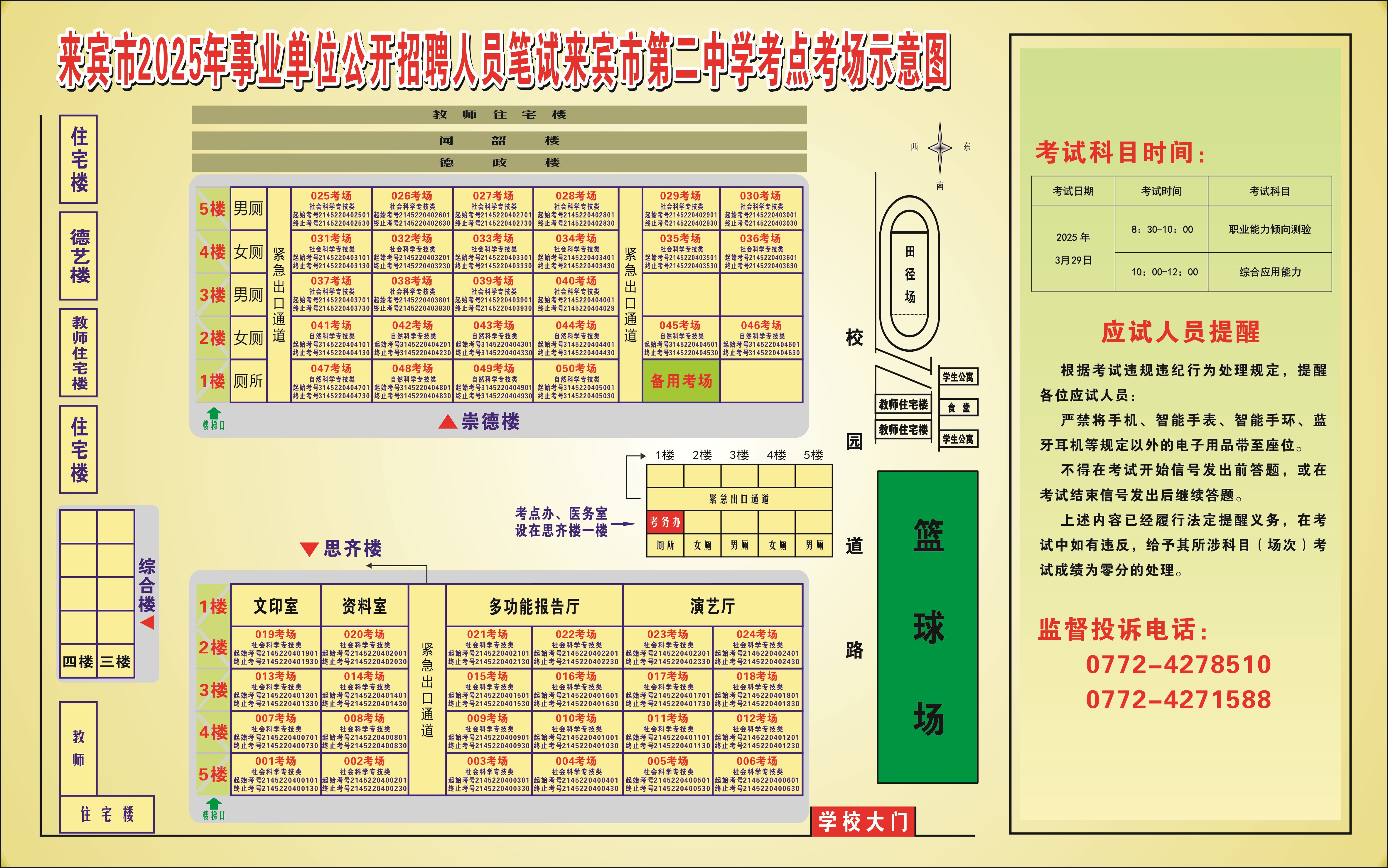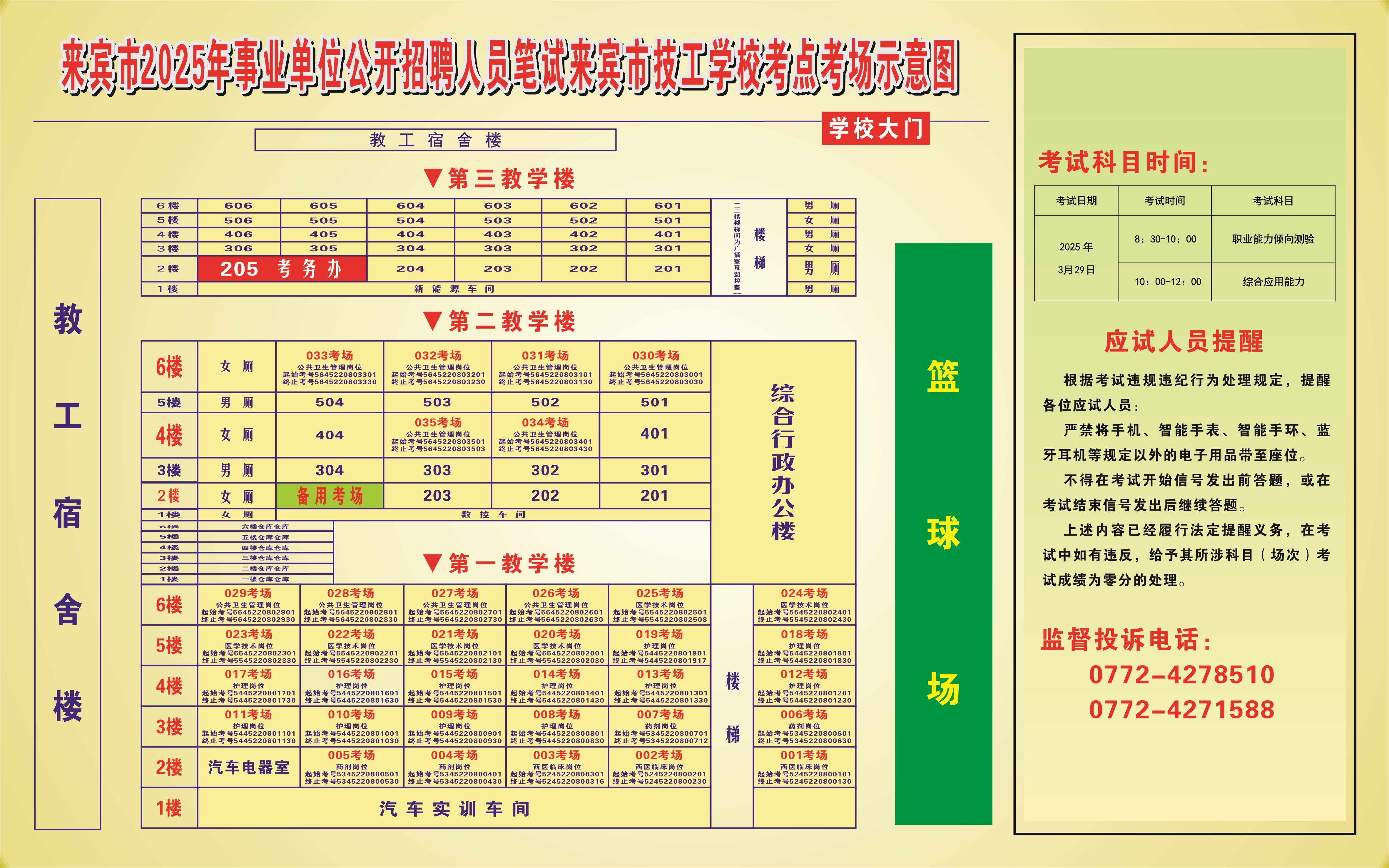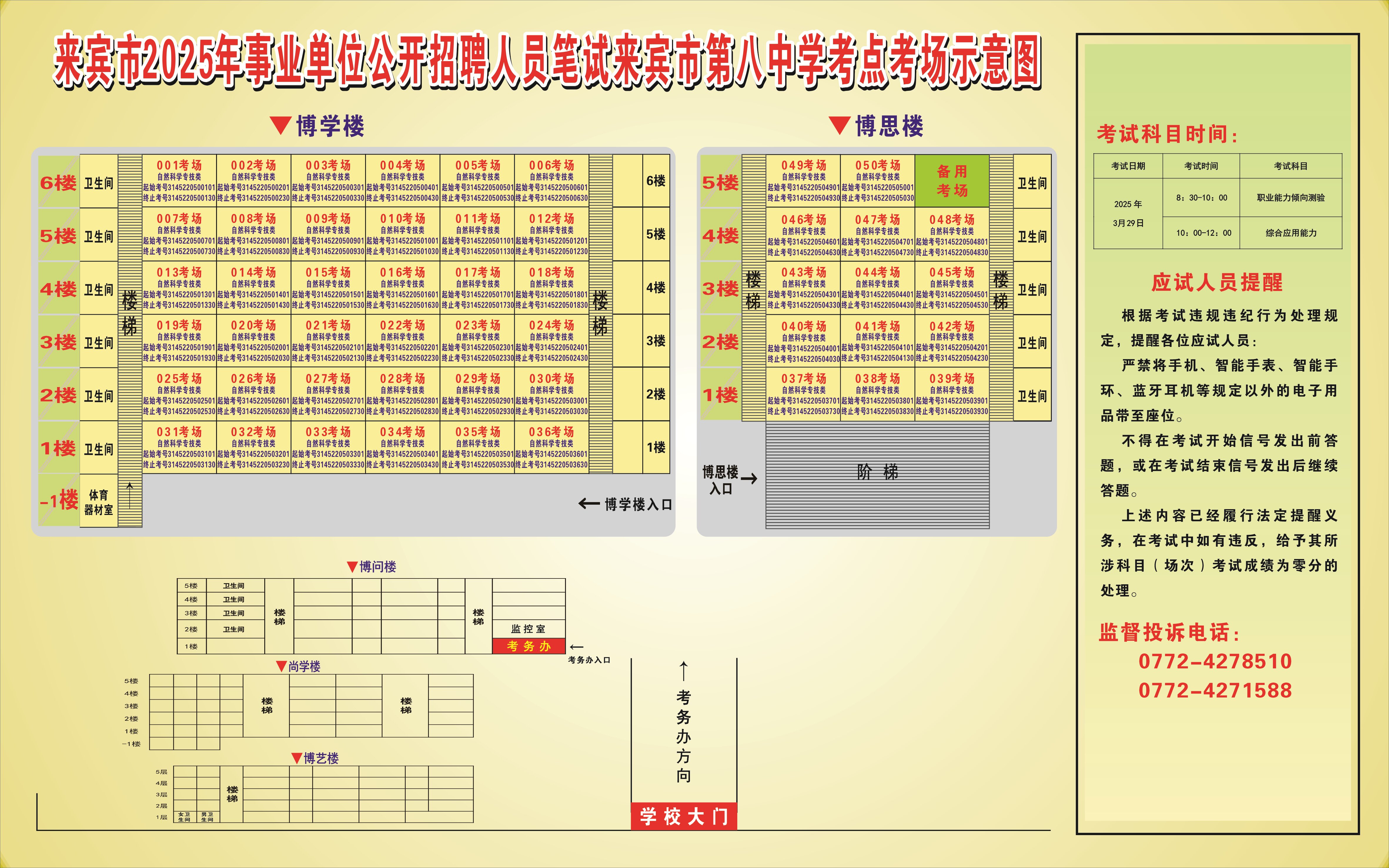 2025年來賓市公開招聘事業(yè)單位人員筆試 考生須知及考點(diǎn)考場示意圖