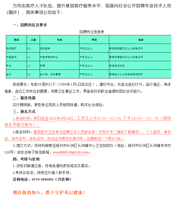 原文標(biāo)題:2025年梧州市長洲區(qū)長洲鎮(zhèn)中心衛(wèi)生院公開招聘公告