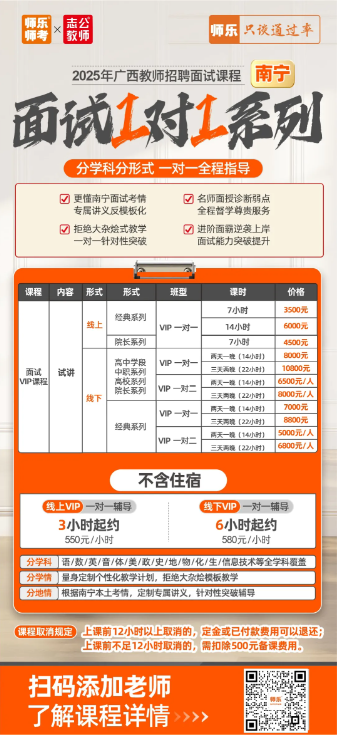 南寧市各區(qū)縣教招面試方式為:試講、說課或試講+結(jié)構(gòu)化。