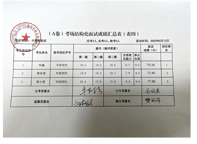 2025年度柳州市林業(yè)和園林局所屬事業(yè)單位公開(kāi)招聘中高級(jí)(急需緊缺)人才(第二批)面試成績(jī)公示