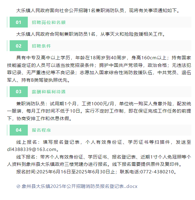2025年來賓大樂鎮(zhèn)招聘消防隊(duì)員1人