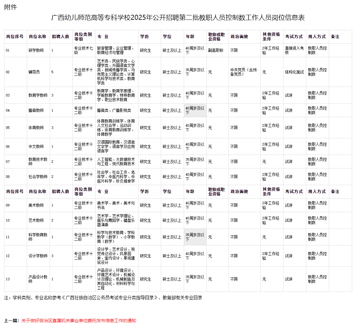 附件:廣西幼兒師范高等專科學(xué)校2025年公開招聘第二批