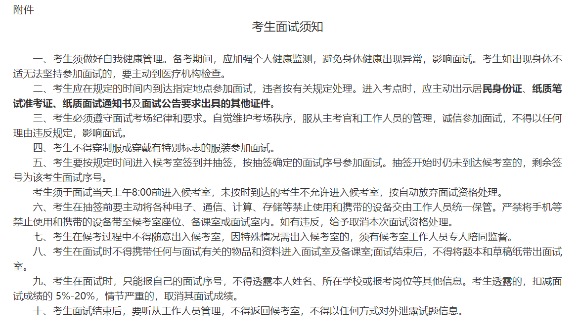 (一)考生領(lǐng)取面試通知書后,應(yīng)熟讀《考生面試須知》(詳見(jiàn)附件)。