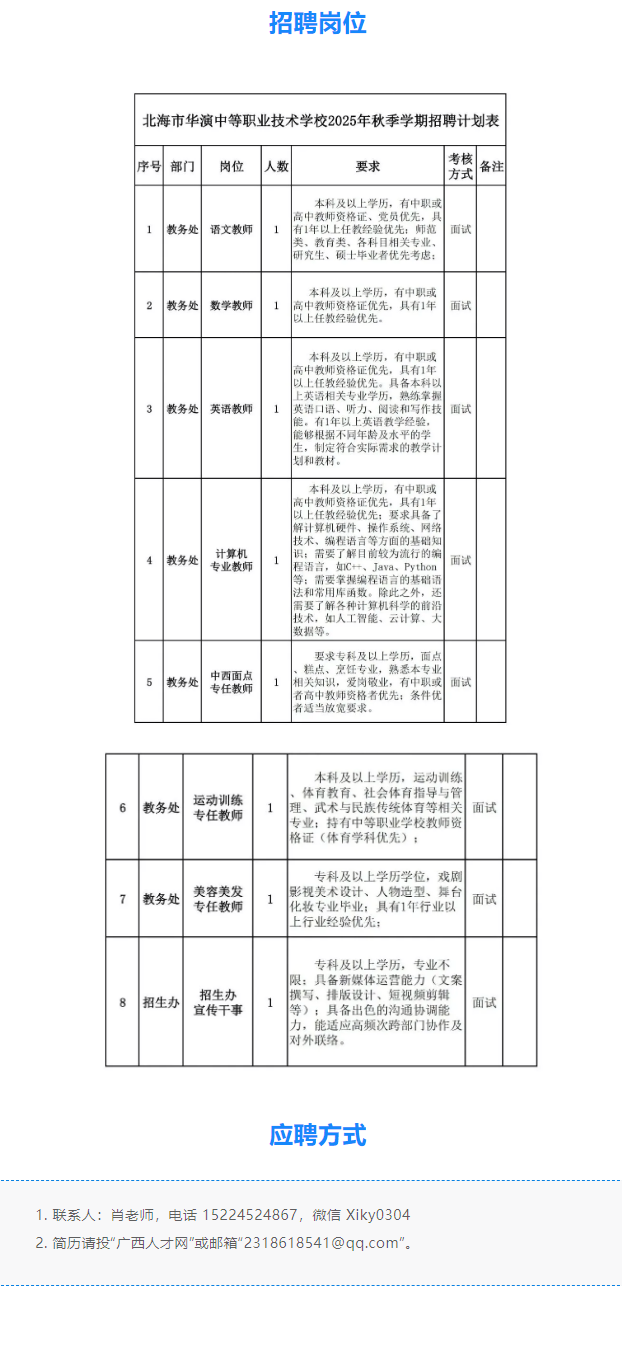 2025年北海市華演中等職業(yè)技術學校招聘啟事