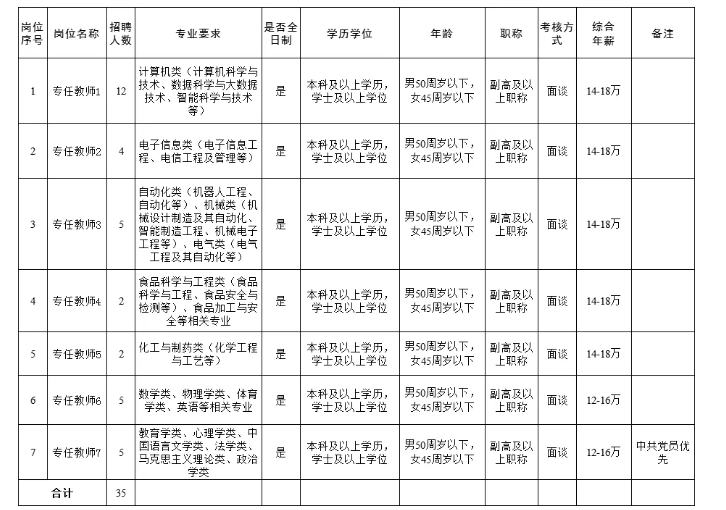 本次公開(kāi)招聘副高及以上職稱(chēng)專(zhuān)任教師共計(jì)35名,具體招聘崗位及條件如下: