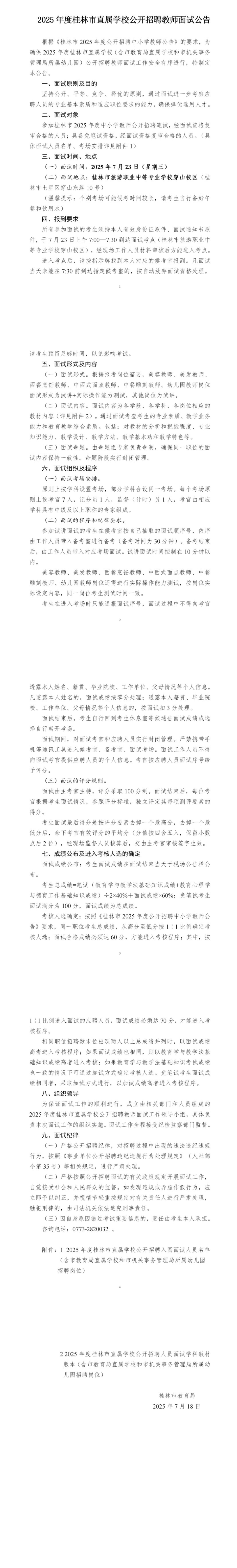 2025年度桂林市直屬學(xué)校公開(kāi)招聘教師面試公告