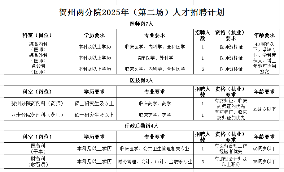 廣西桂東人民醫(yī)院賀州兩分院2025年(第二場(chǎng))人才招聘公告