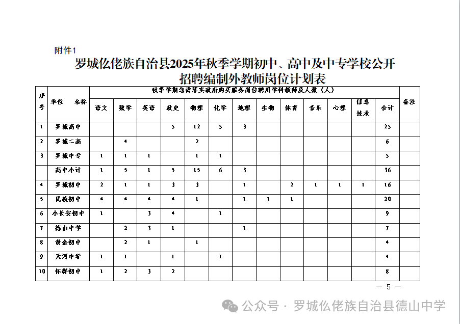 原文標(biāo)題:羅城仫佬族自治縣2025年秋季學(xué)期初中、高中及中專學(xué)校公開(kāi)招聘編制外教師工作的公告