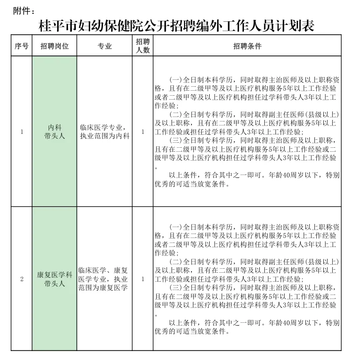 詳見(jiàn)《桂平市婦幼保健院公開(kāi)招聘編外工作人員計(jì)劃表》(附件)