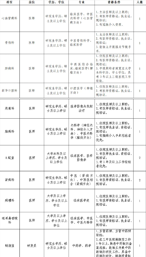 根據(jù)醫(yī)院高質(zhì)量發(fā)展需要,我院誠聘衛(wèi)生醫(yī)療相關專業(yè)領域的人才,歡迎投簡歷應聘。