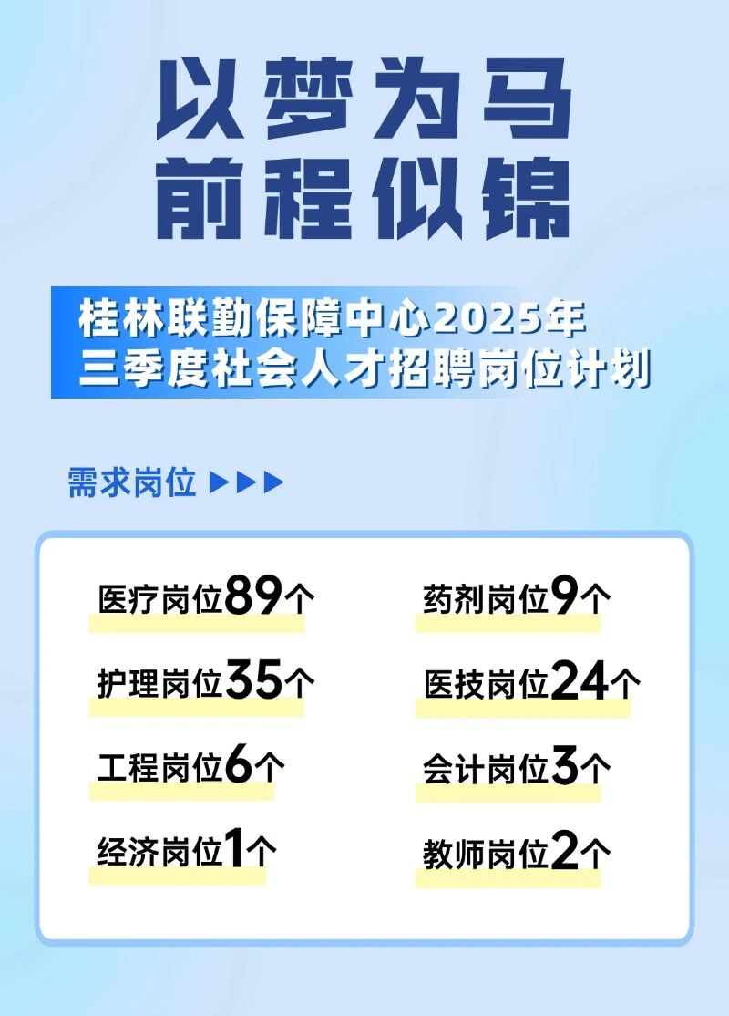 桂林聯(lián)勤保障中心2025年三季度社會人才招聘崗位計(jì)劃169個(gè)